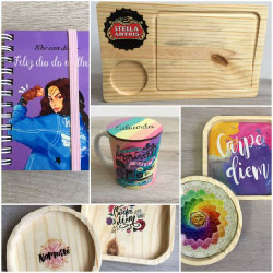 Personalizar conteúdo e design em materiais como: folders, canecas, copos, materiais de